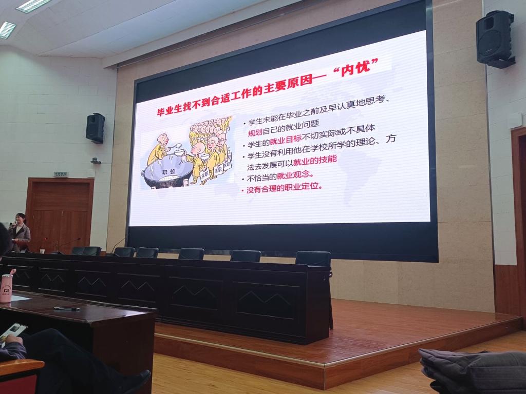 中间环节顾老师从毕业生的“三种路径选择”,即创业、就业和升学三个方面出发,引导同学们思考“作为大学生究竟要根据什么来选择自己的发展路径”的重要问题,同学们众说纷纭,讨论声此起彼伏。顾老师就这一问题,也从三个方面进行论述:一、目标定位。“如果不知道你要到哪里,通常你哪也去不了”,就是说要做好职业规划,首先要确立目标,这个目标不仅指终极目标,更是指要制定阶段目标,了解自己最真实的内心需求,明晰自己的性格特质,再对自己的目标以“可持续+可实现=合理目标”为标准加以评估;二、阶段定位。每位毕业生都处于不同的阶段,根据定位图来看,有的同学处于生存阶段,即需要毕业后立刻工作作为谋生手段,而有的同学生存问题不那么紧迫,只希望能有更好的发展,不论属于以上哪种情况,都应该剖析自己的能力,探索内心真实需求,再做“是否朝更好职业方向发展或继续学习深造”的决定;三、技能定位。“你现在能做什么?”在回答这个问题前,首先应该明白自己喜欢做什么、擅长做什么、能够凭什么技能而谋生,当这三个问题的答案有所重合,就可以基本明确职业定位,在此基础上平衡好业余爱好、理想工作和谋生手段这三个重要方面,进而在解决生存问题的基础上,获得发展动力,发现快乐,达到理想生活状态。