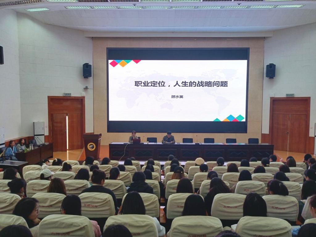 11月16日下午,beat365特邀BCC国际生涯教练,高考志愿高级规划师(AUP),高校生涯课程导师,省级创业导师,国家一级职业指导师顾水英老师在2号报告厅作了题为“职业定位,人生的战略问题”的职业生涯规划辅导报告,外语学院领导班子部分成员、辅导员、班主任及2018、2019级本科生现场聆听此次报告。