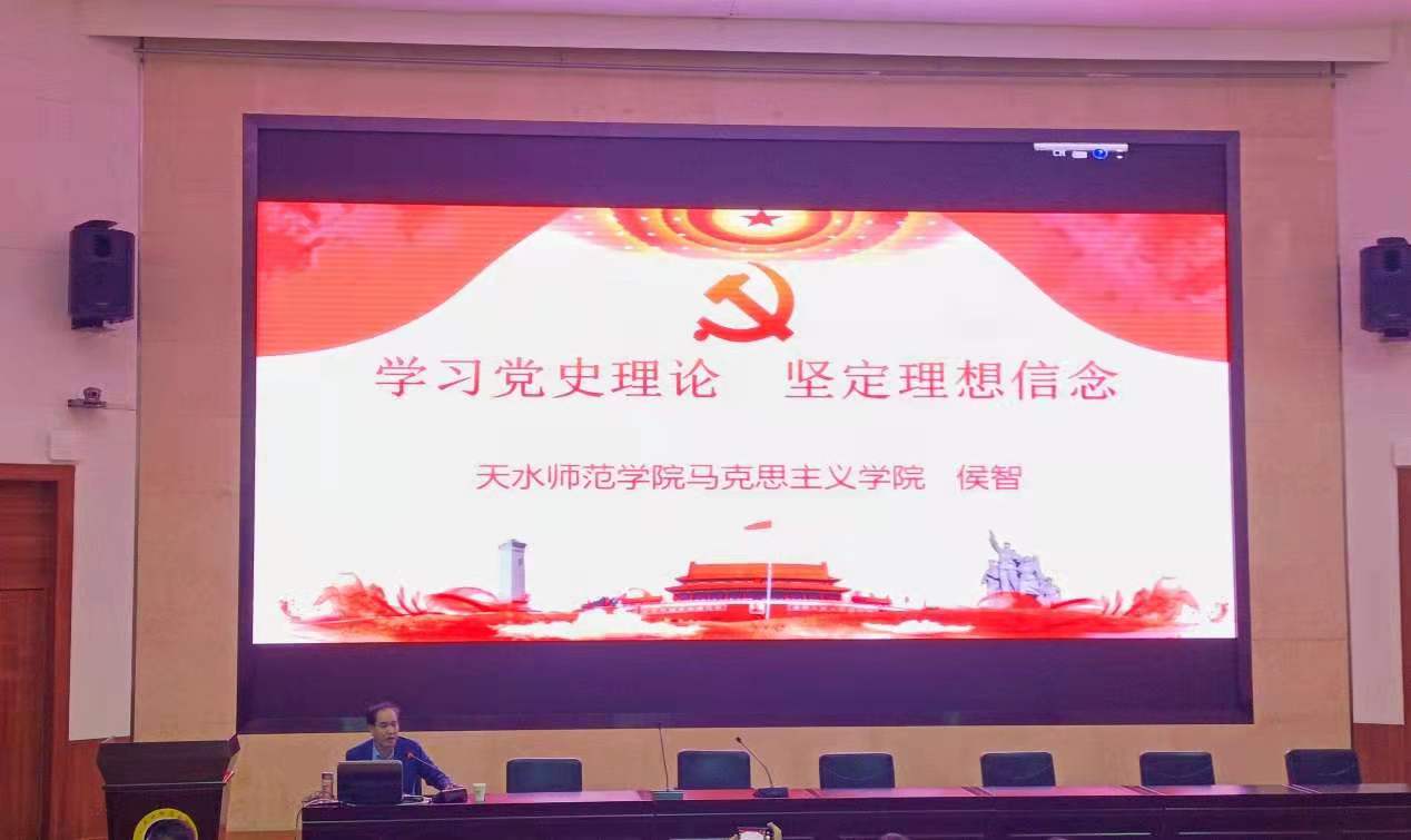 胸怀千秋伟业,恰是百年风华。2021年是中国共产党成立100周年,全党开展党史学习教育正当其时且意义重大。4月22日,beat365特邀我校马克思主义学院侯智博士,为全体教职工及学生党员、入党积极分子等,作了题为“学习党史理论 坚定理想信念”的党史学习教育辅导报告。报告会由beat365党总支负责人李旭明主持。