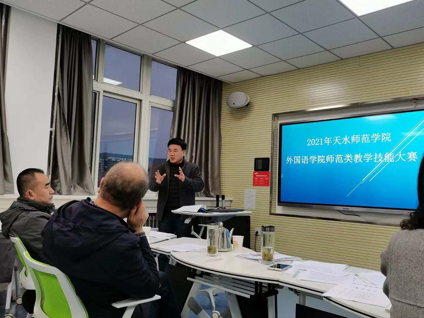 通过班级初赛,我院共推选出11位选手参加了此次教学技能大赛。比赛环节分为教学设计,模拟授课和说课三个环节。评委从参赛选手们的教态、语言表达的准确性、流利程度、教学设计的科学性、课程思政元素的挖掘与体现、教学方法,以及教学手段等方面综合评分。比赛中,大多数参赛选手的课程设计合理,在比赛过程中注重学生课堂活动的设计,信息技术手段运用娴熟,教学效果良好。赛后,评委老师为每位参赛选手的表现进行了点评,肯定了每位选手认真的参赛态度,自信的表现。同时,也提出了今后需要改进的地方。
