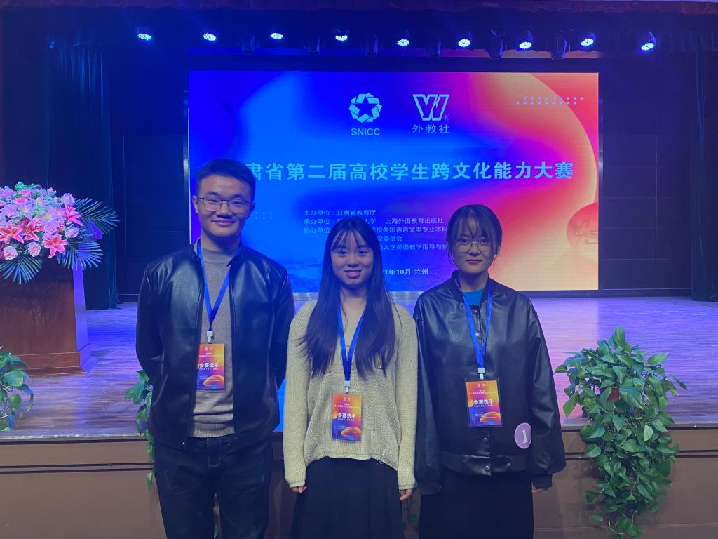 10月16日,甘肃省第二届高校学生跨文化能力大赛在西北师范大学举行,来自省内的21支高等院校代表队参加了此次比赛。由我校2019级英语专业3班范永兰、2020级小学教育专业曾雨欣和2019级机械电子工程专业谭博文组成的beat365代表队经过刻苦准备,以扎实的专业功底,迅速的思辨能力,出色发挥,最终获得大赛一等奖的好成绩。