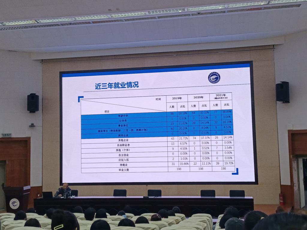 首先崔部长根据以往我校学生各个行业的就业率统计,认为本校毕业生就业渠道以中小型企业为主,提出大学生应该提前进行职业规划并且辅修相关专业,还鼓励同学们认真分析自己的性格特质,即根据胆汁质型、粘液质型、多血质和抑郁质四种类型,尽早匹配发展道路开展职业规划。同时选择行业要以自己的价值为中心,自己的兴趣为两个基本点,告诫同学们先就业,再择业,多与高年级的同学请教,定向规划阶段性任务。