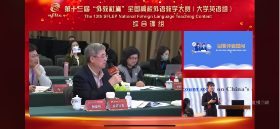 本次大赛采用线下授课和说课相结合的形式。授课通过抽选题目,在限定十三天内,教师需要设计出完整的说课及教学内容。任晓妍老师用国际前沿的教学理念对授课单元进行深入解读,不断完善、优化,最终确立教学设计和方案。在比赛中,任晓妍老师由浅入深的课堂设计,扎实的语言基本功、标准的语音语调及高度参与感的课堂氛围,得到了评委的一致好评。