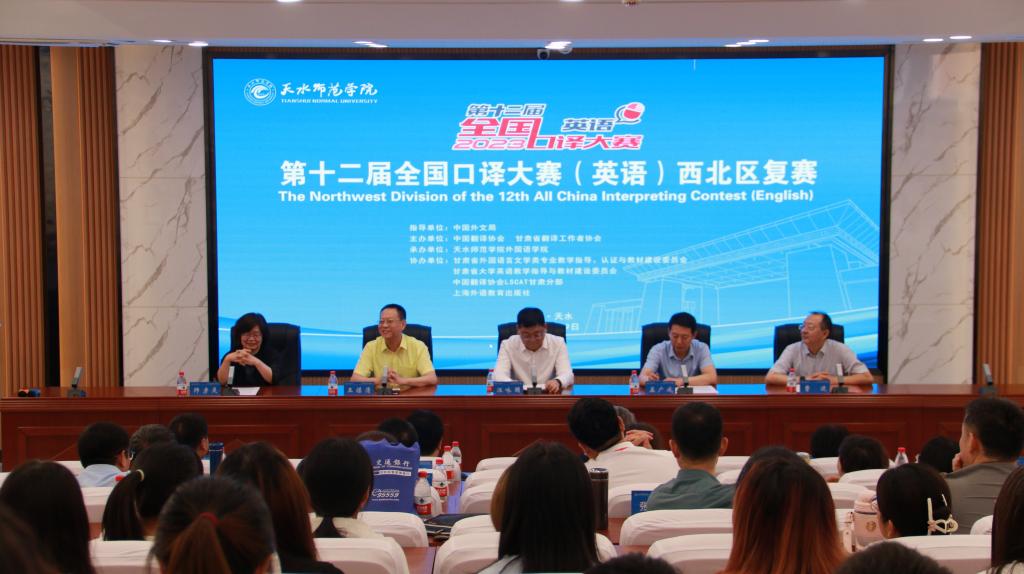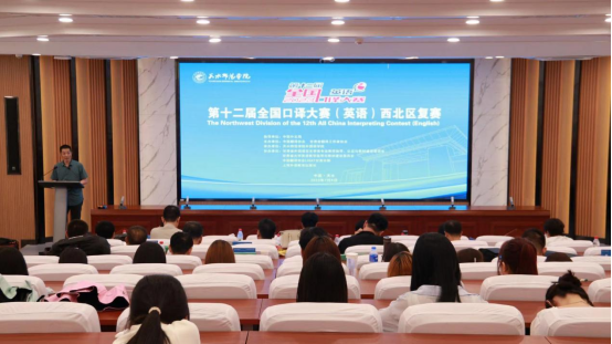 传播中国声音,讲好中国故事。7月9日,第十二届全国口译大赛(英语)西北区复赛在我校隆重举行。此次比赛由中国外文局指导,中国翻译协会、甘肃省翻译工作者协会主办,甘肃省外国语言文学类专业教学指导、认证与教材建设委员会、甘肃省高等学校大学英语教学指导与教材建设委员会、中国翻译协会创业创新中心甘肃分部、上海外语教育出版社等单位协办。