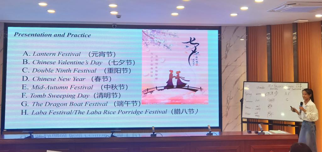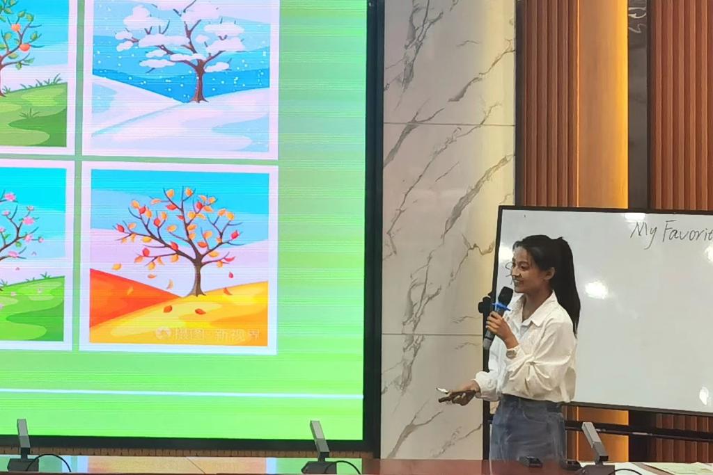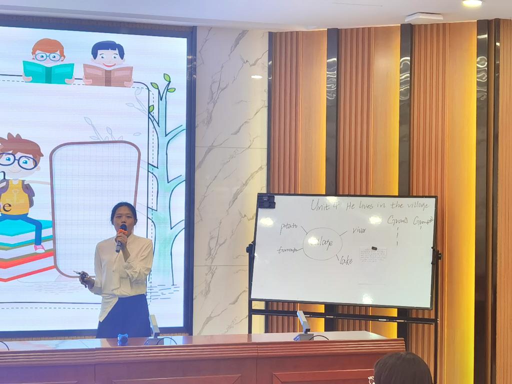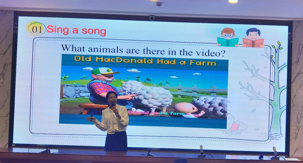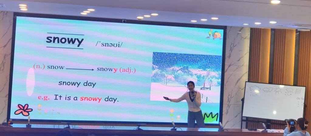 大赛分为即兴演讲、课堂教学展示、课后教学反思三个环节。余文静同学在授课环节将歌曲、古诗词和传统节日巧妙地融合到单词和课文讲解当中,课堂气氛活跃。王蓉同学在模拟上课环节采用歌曲导入复习单词,运用简笔画对新单词进行了详细讲解和扩展,口语流利,自信大方。马君茹同学以一首英文歌曲的演唱开始了自己的授课环节,亲和力强,游戏环节生动有趣。三位选手精神饱满、教态自然、声音洪亮、对教学内容熟练,展示了我院师范生的教学风采,受到一致好评。