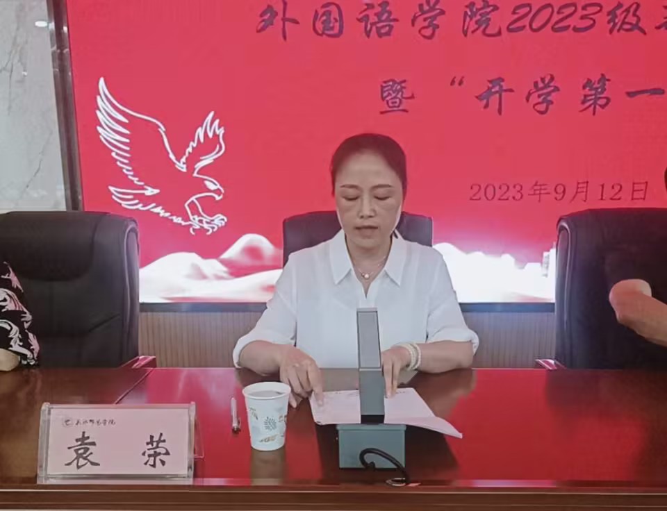党总支副书记袁荣从大学生管理的角度进行发言,总结了21条大学生活的金玉良言,希望新同学们强身健体,时刻注意人身及财产安全,防范电信诈骗,关注自身能力发展,提前做好职业生涯规划,在未来的人生中一帆风顺。