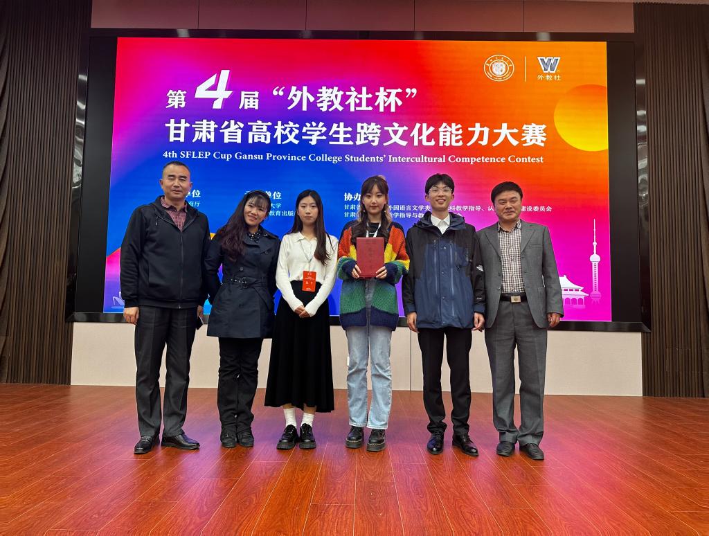 10月14日,第四届甘肃省高校学生跨文化能力大赛决赛在兰州交通大学举行。我校英语专业王珂、汉语言文学专业李梦云和应用化学专业张轩组成的代表队荣获大赛一等奖第三名的好成绩。这也是我校连续第三次获得该赛事一等奖。