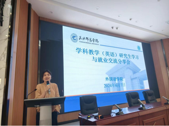 张丽同学在2022年获甘肃省优秀研究生“创新之星”项目,攻读硕士期间参与省级项目一项,并发表论文两篇。目前已成功考取两所县级重点高中的英语教师岗。张丽同学主要对如何捕捉招聘信息以及教师招聘类型进行了介绍。同时她从自身经验出发,就教材选取、上课模式及讲课细节等方面做了分享。