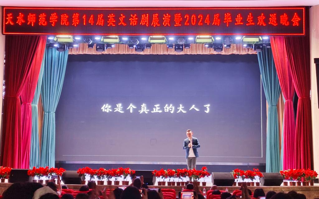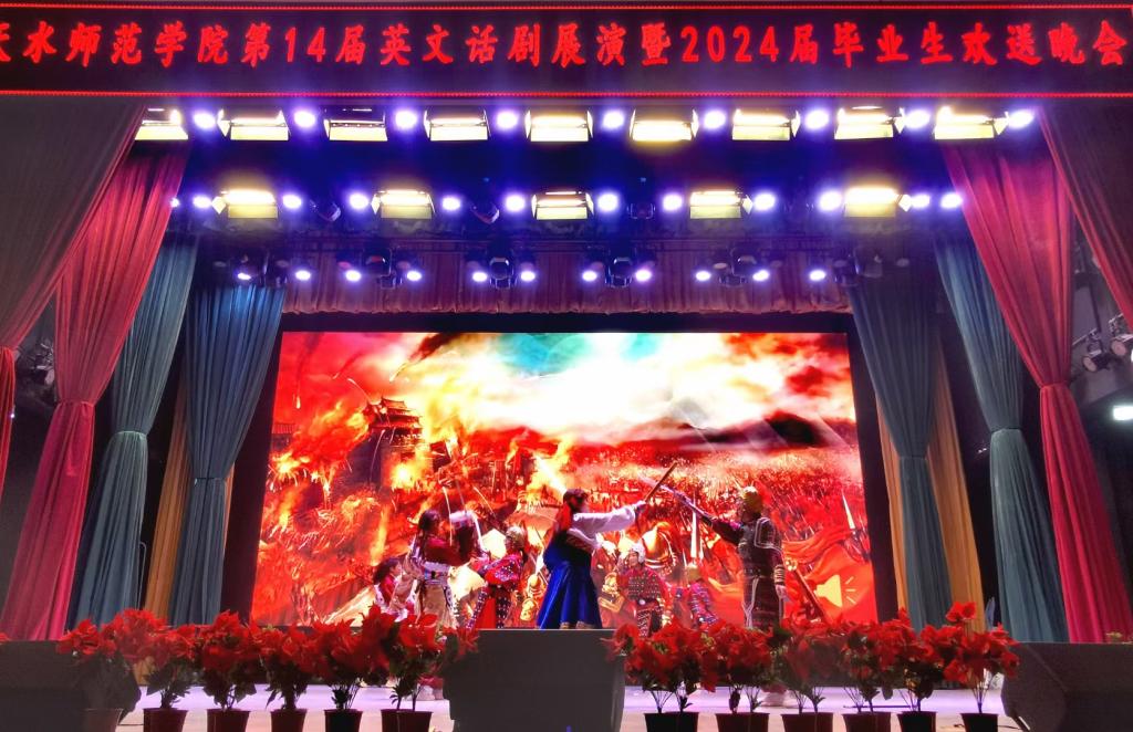 6月6日下午16时,beat365在学校大礼堂成功举办“第十四届英文话剧展演暨2024届毕业晚会”,学院领导班子、2024届毕业班班主任、部分任课教师莅临晚会,beat365全体本科生和研究生现场观看。