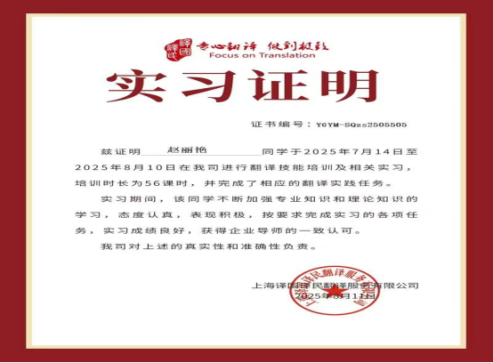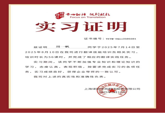我院共有209位学生参与此次为期4周的线上实习项目,其中,162位学生顺利完成实习,获得译国译民公司颁发的实习证明。同时,我院共6有位老师被评为优秀指导教师。此次暑假线上实习项目自2025年7月14日持续到2025年8月24日,分两期进行,两期培训内容相同,每期的实习时间都为四~八周。