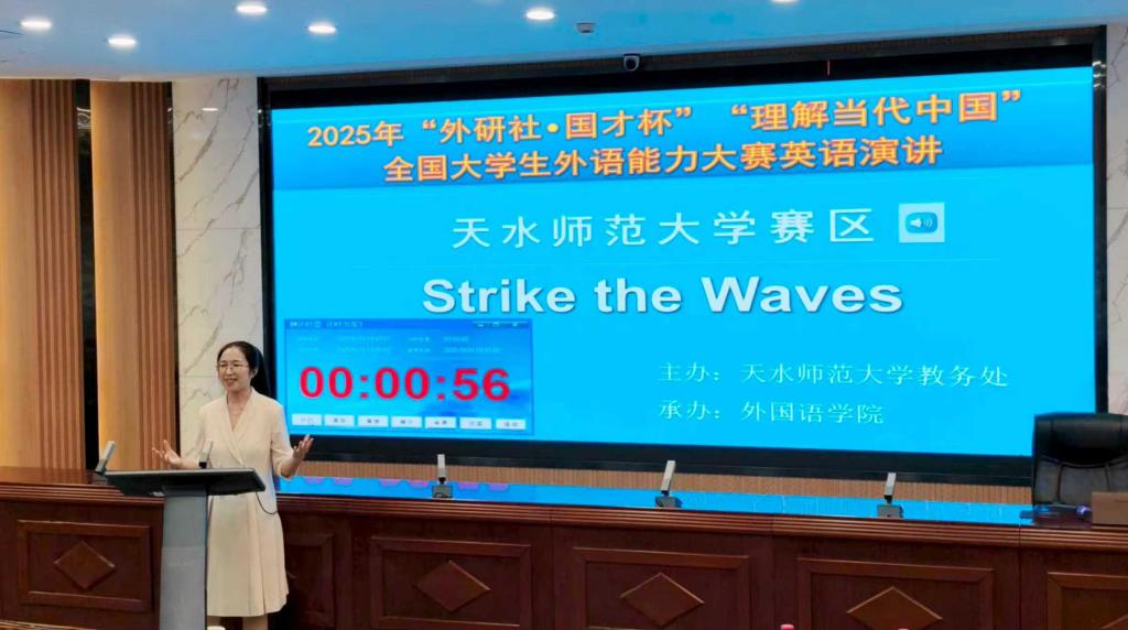 近日, 由我校教务处主办、beat365承办的2025“外研社”“国才杯”“理解当代中国”全国大学生外语能力大赛天水师范大学校赛圆满落下帷幕。作为国内规模最大、影响力最广的大学生外语赛事之一,大赛以“理解中国,沟通世界”为理念,旨在培养和选拔能讲好中国故事、传播好中国声音的新时代外语人才。本次大赛设置演讲、综合能力、笔译、口译及短视频等多个赛项,历时一个多月,吸引了全校各院系本科生和研究生的广泛关注和积极参与,赛事组织严谨,竞争激烈,成果丰硕。